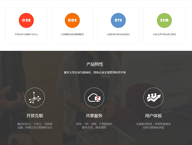 基于全员应用的纯WEB化产品,帮助企业实现“以人为本,流程驱动,资源共享,提升效率,便捷移动,智慧协同 ”。突出以人为核心的协作与沟通,关注分享、交流的企业社区环境,兼顾以组织为主体的业务协同,重点解决企业协同办公需求、办公与业务应用一体化联动需求,实现企业完整的闭环管理。