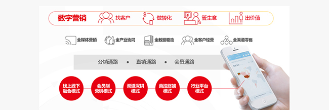 用友NC6,依托领先的互联网及大数据技术,打通数字营销全产业链,帮助企业整合媒体、渠道、会员、产业链到营销大数据,打造全新的数字营销体系,实现基于O2O、B2B2C、会员营销、终端管控、行业交易平台等五种运营模式的精准数字营销,为传统企业营销革命与转型升级创造更大价值。