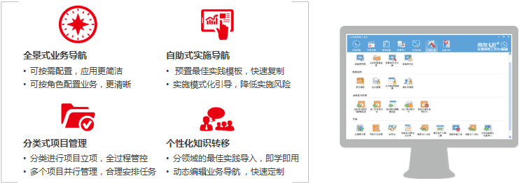 U8+可以为您提供简单适用、快速见效、低成本的实施工具,全面提升实施效能。该工具可使实施周期降低16%,实施成本得到有效控制。